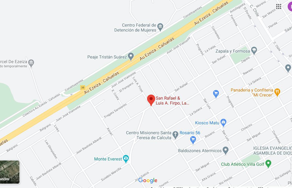 Los lotes se encuentran ubicados entre Firpo, Viamonte, San Rafael y San Luis, al lado de la Autopista Ezeiza Cañuelas.