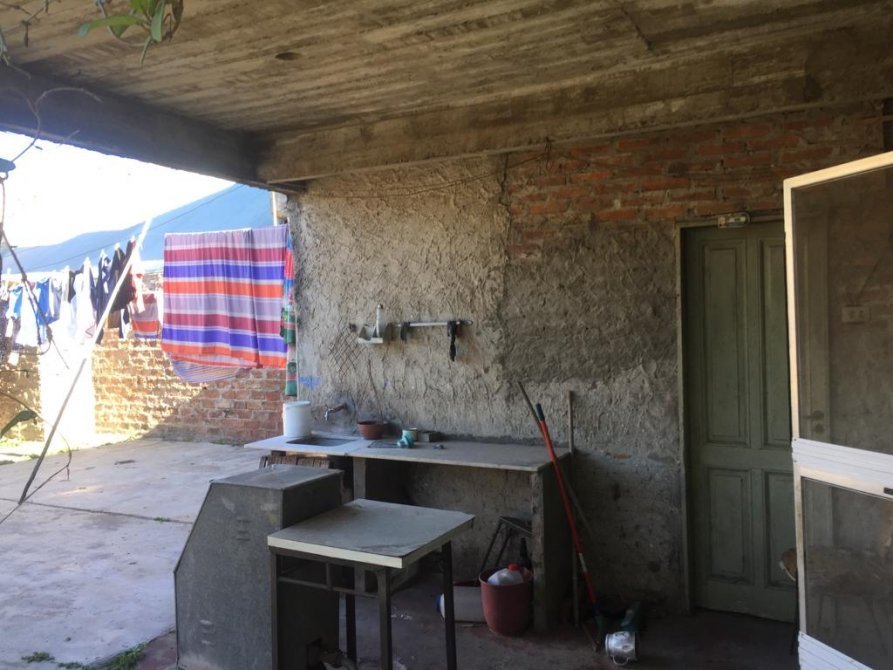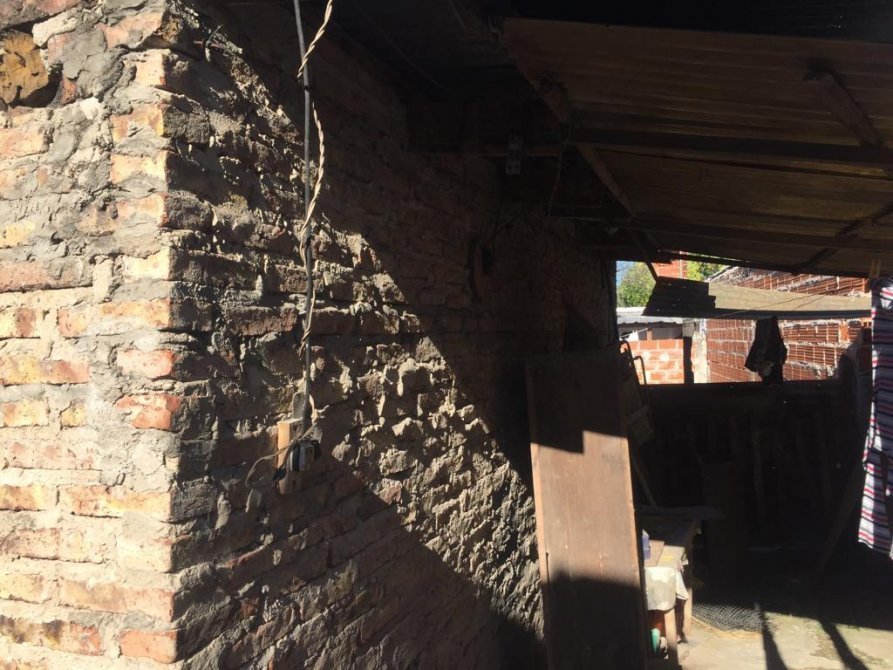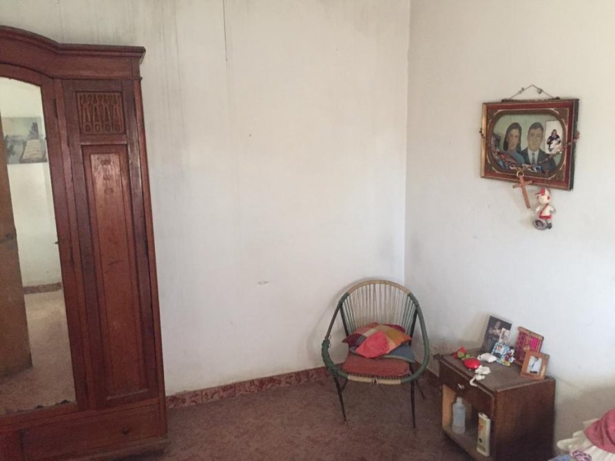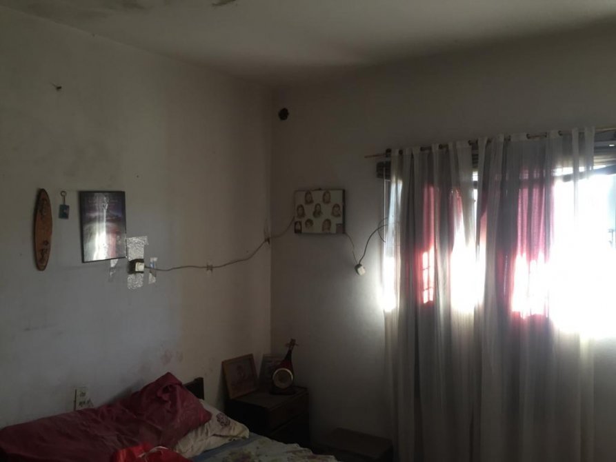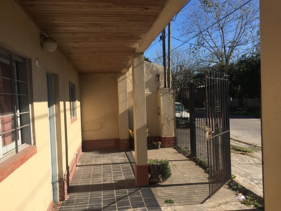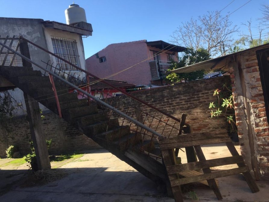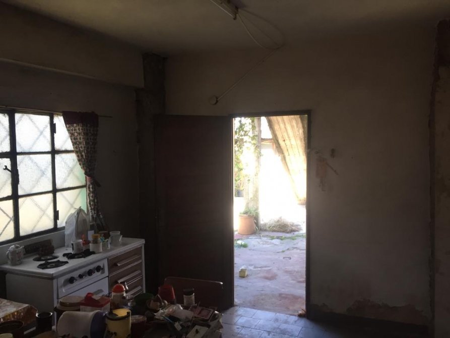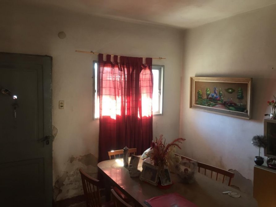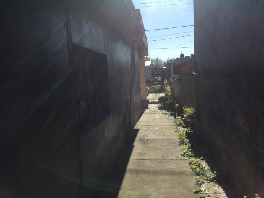 La casa en el costado tiene un pasillo ancho hacia el fondo, dentro de la casa tenemos un living-comedor, 2 dormitorios amplios y 1 hambiente mas (se puede hacer dormitorio), cocina y un baño completo. (TODO EL PISO ES DE CERAMICA). En el patio del fondo tenemos una escalera con la cual se accede a la terraza. En el fondo tenemos un patio amplio y cuenta con una construccion tipo (departamento) a refaccionar.